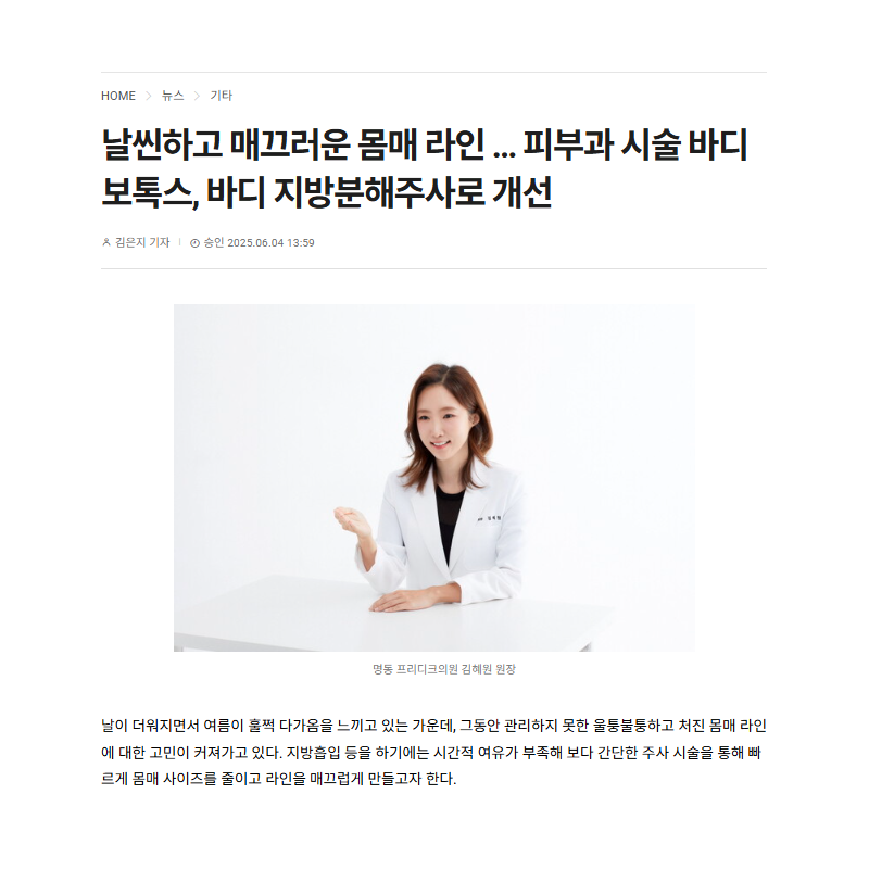 날씬하고 매끄러운 몸매 라인… 피부과 시술 바디 보톡스, 바디 지방분해주사로 개선