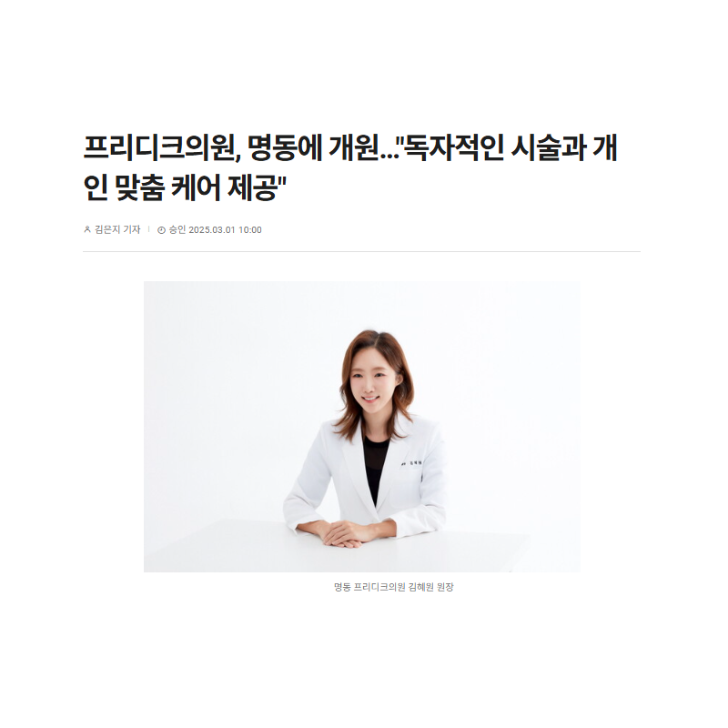 프리디크의원, 명동에 개원…"독자적인 시술과 개인 맞춤 케어 제공"